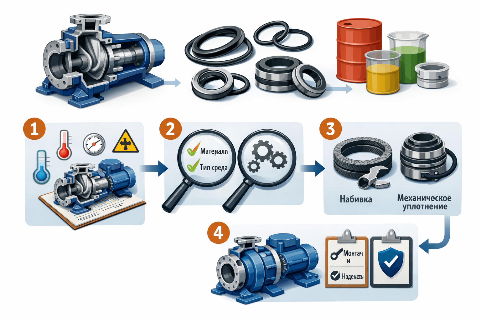 Правильный выбор уплотнения для насоса — ключ к его долговечности и бесперебойной работе. Неправильно подобранное уплотнение приводит к утечкам, простоям и дорогостоящему ремонту.
