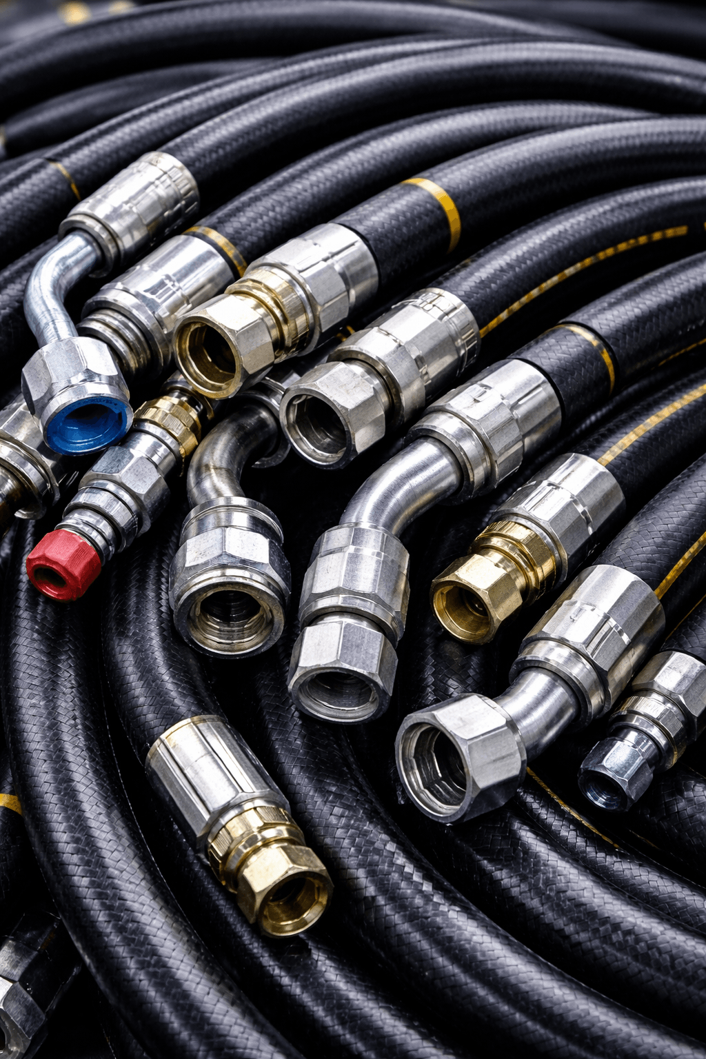 Поставляем и изготавливаем рукава высокого давления для гидравлических систем, промышленного оборудования и спецтехники. Опрессовка, комплектация фитингами, нарезка по длине.